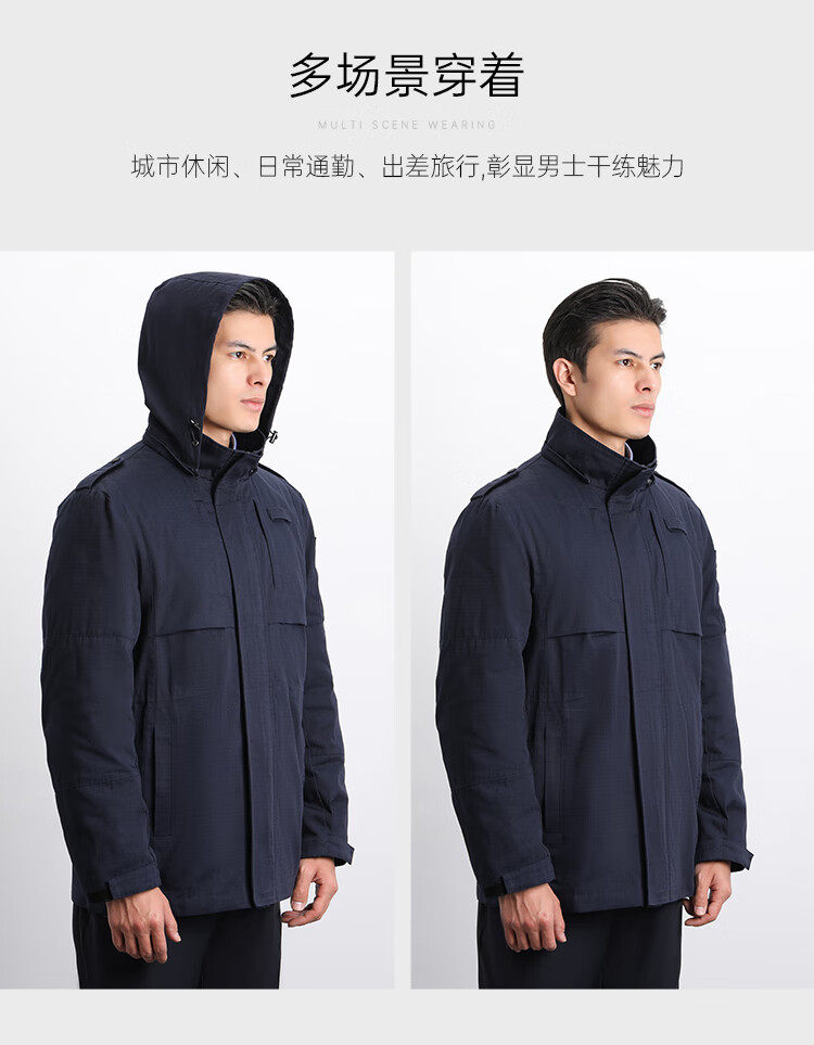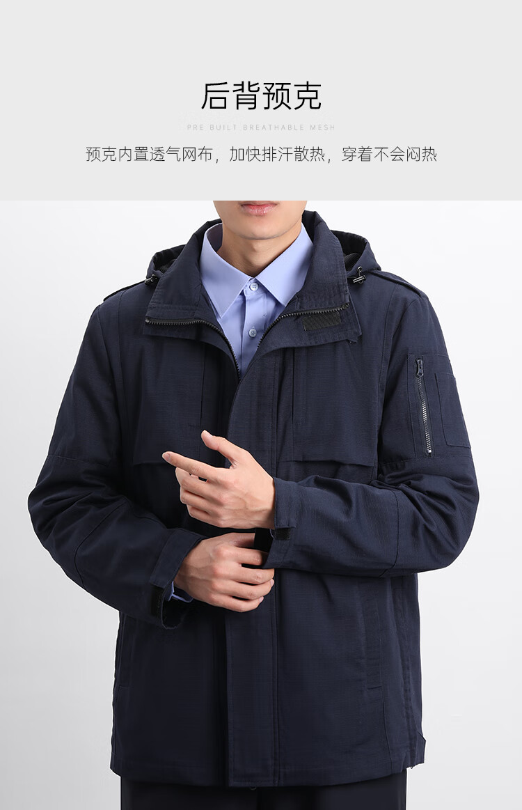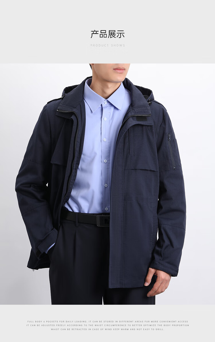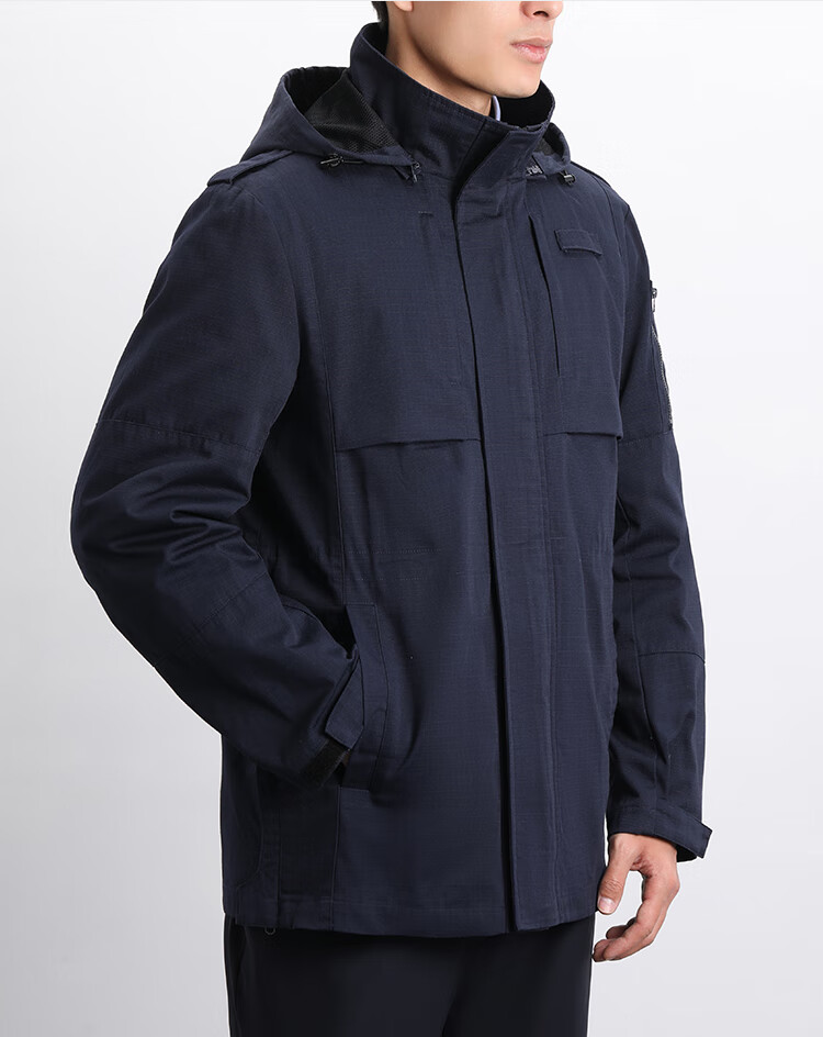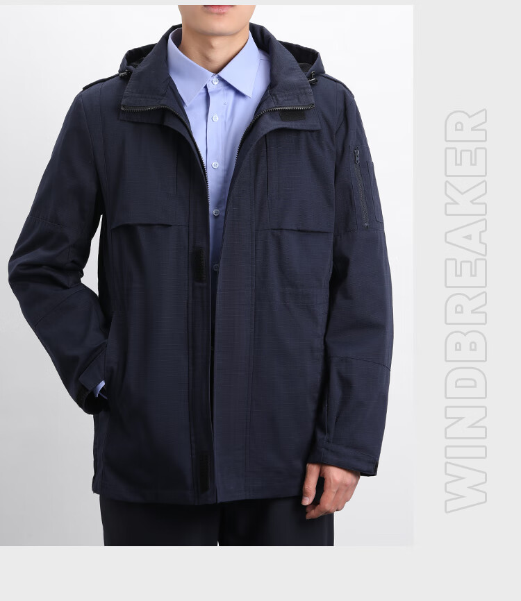 蜀黍家(SHUSHUJIA)中长款通勤风衣外套春秋季男士多口袋战术连帽可拆卸商务休闲上衣