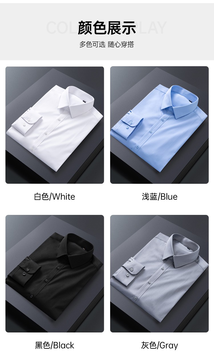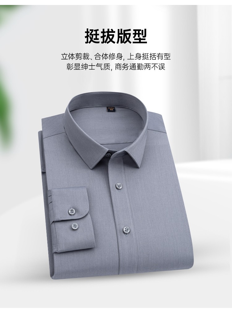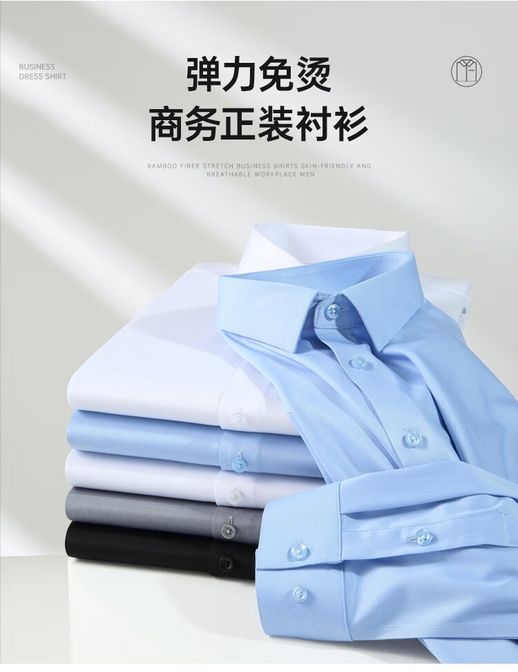 蜀黍家竹纤维弹力商务衬衫男士春秋长袖衬衣纯色免烫抗皱长袖