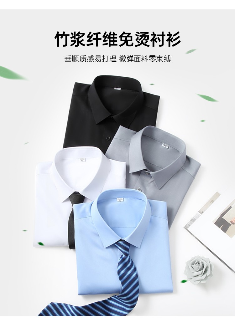 蜀黍家竹纤维弹力免烫衬衫2022年夏季修身薄款商务绅士衬衣