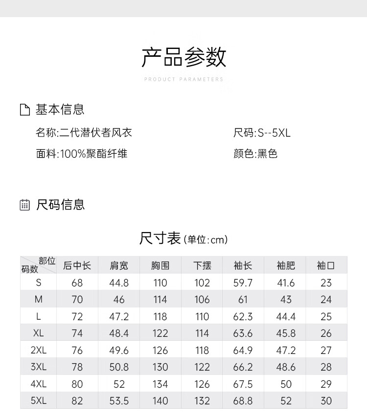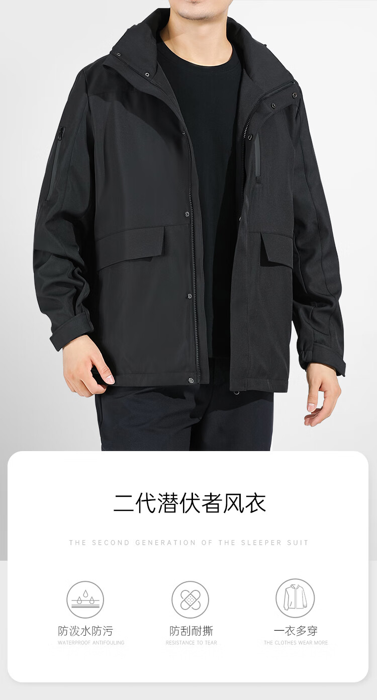 蜀黍家二代潜伏者风衣男通勤防风黑色户外训练风衣外套