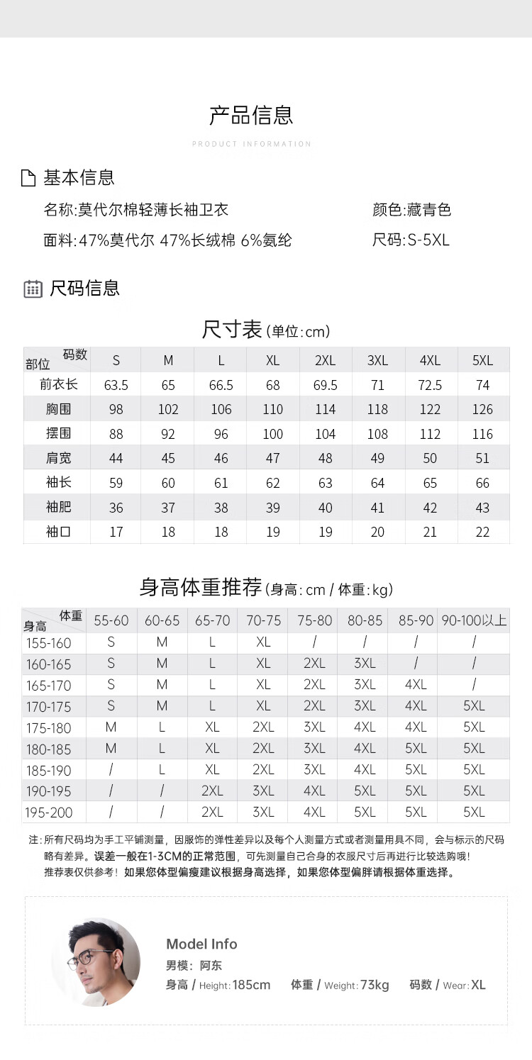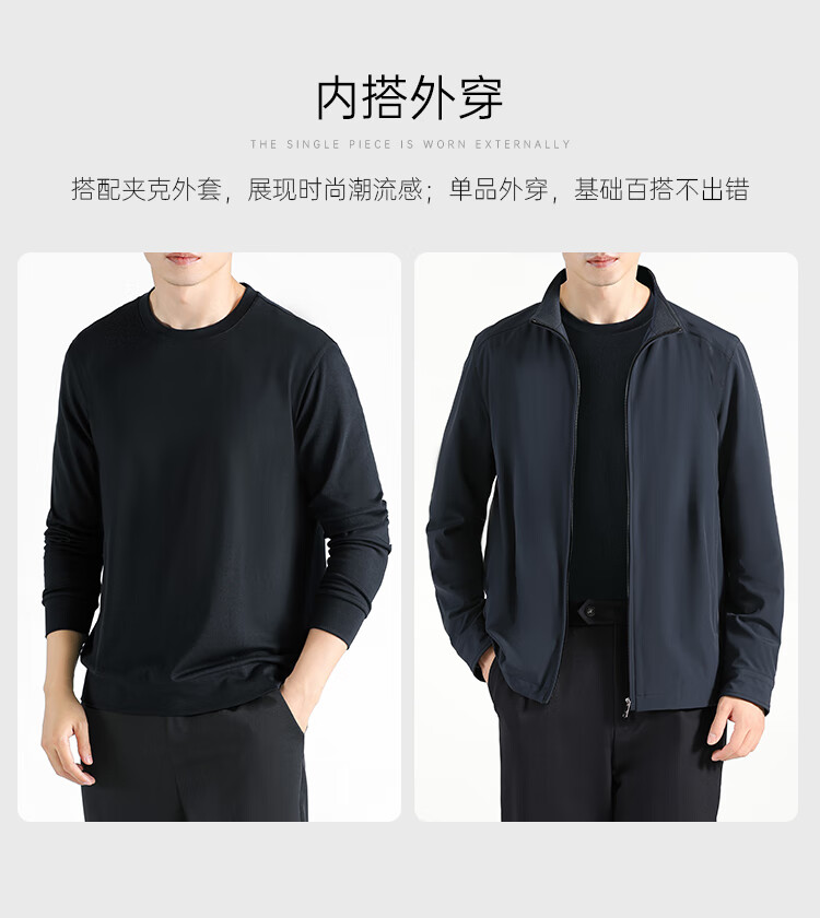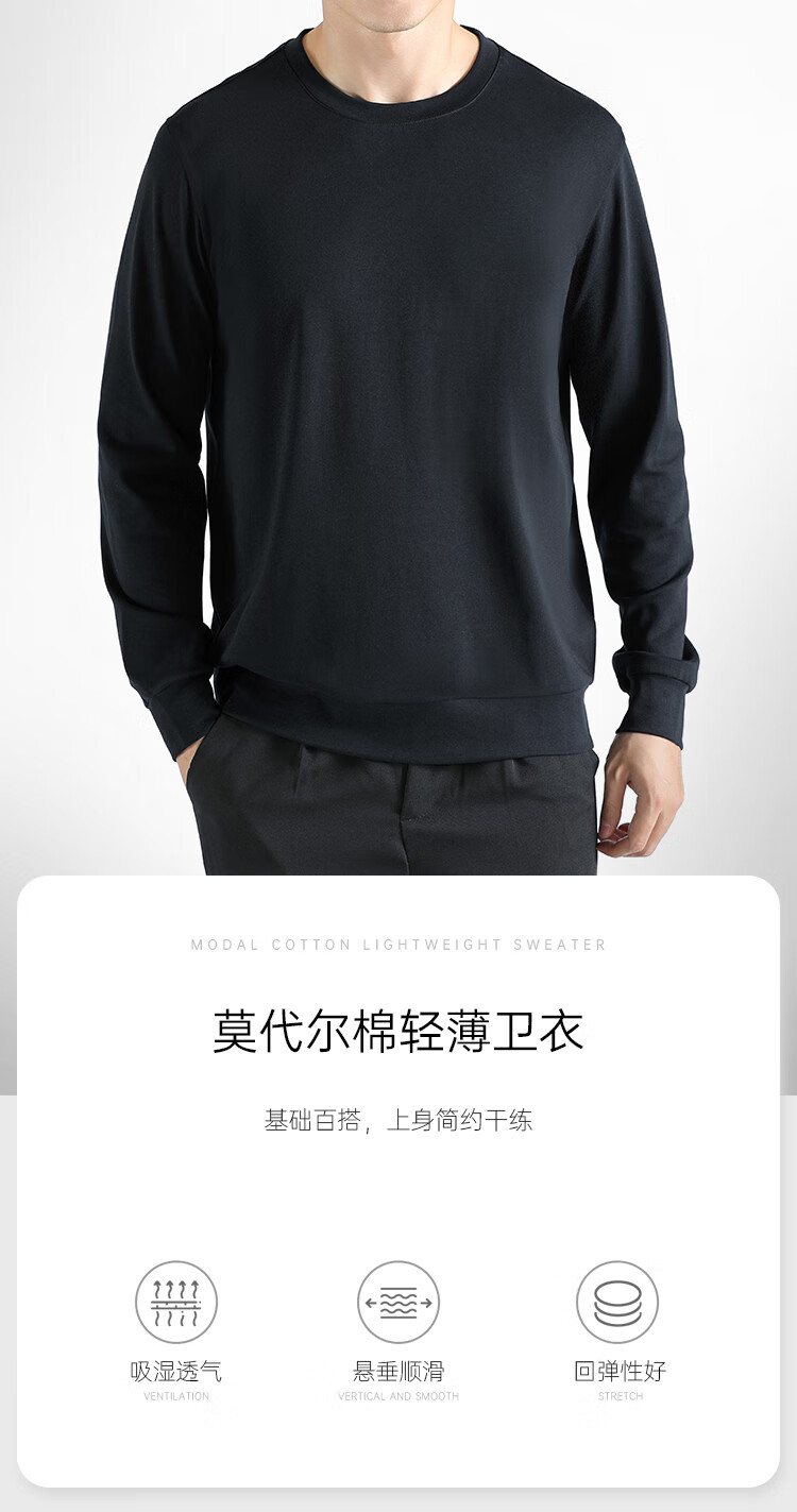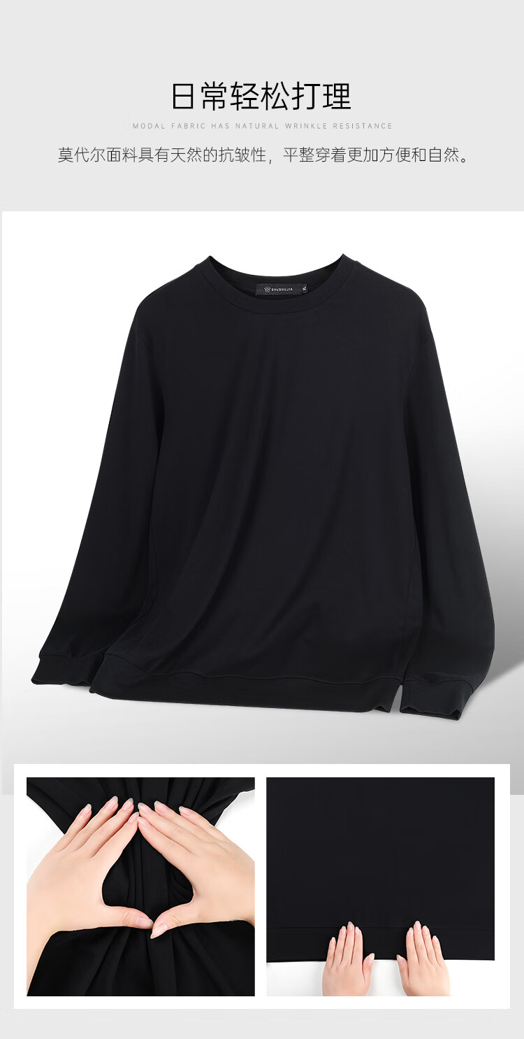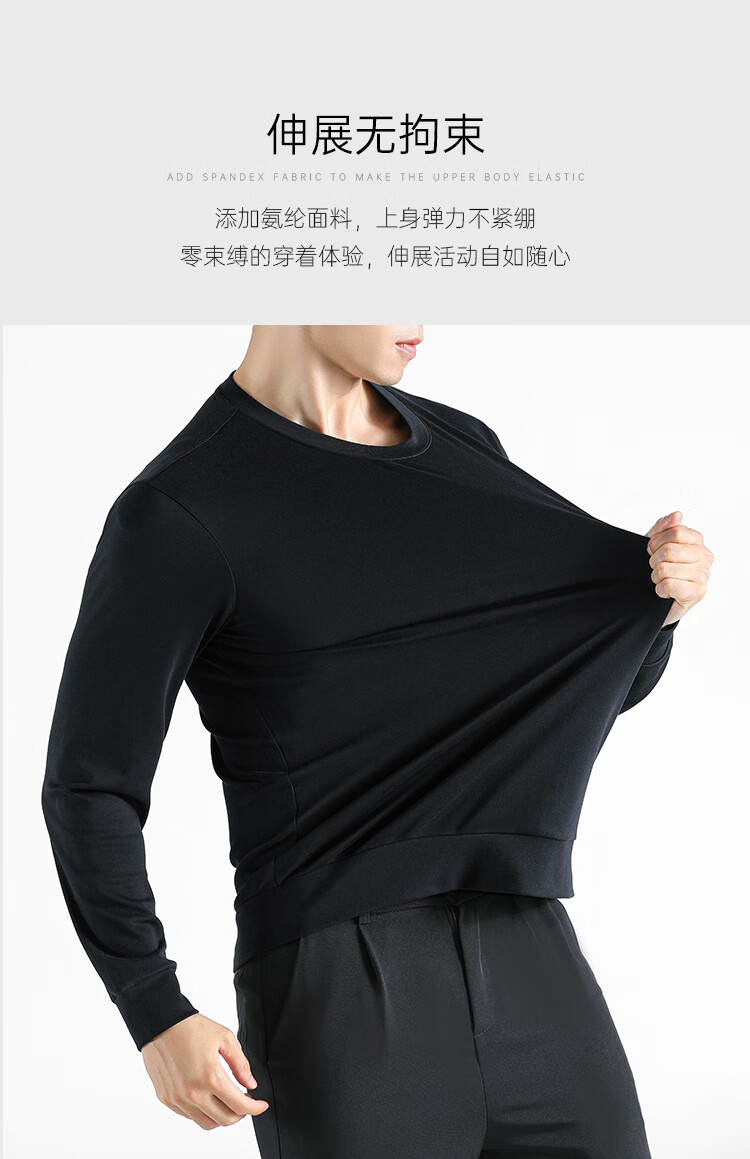 蜀黍家(SHUSHUJIA)蜀黍家莫代尔棉长袖卫衣男高弹力T恤春秋薄款