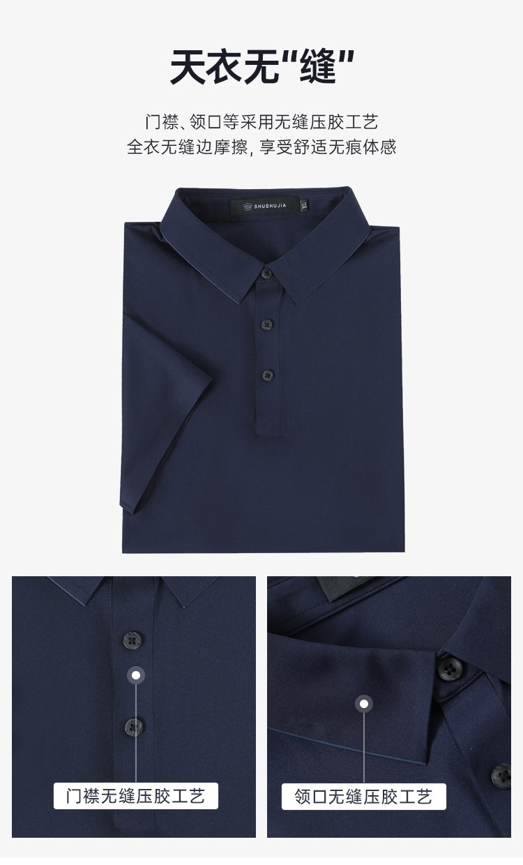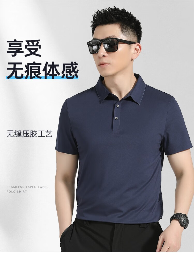 蜀黍家无缝压胶翻领T恤休闲通勤短袖男士夏季薄款