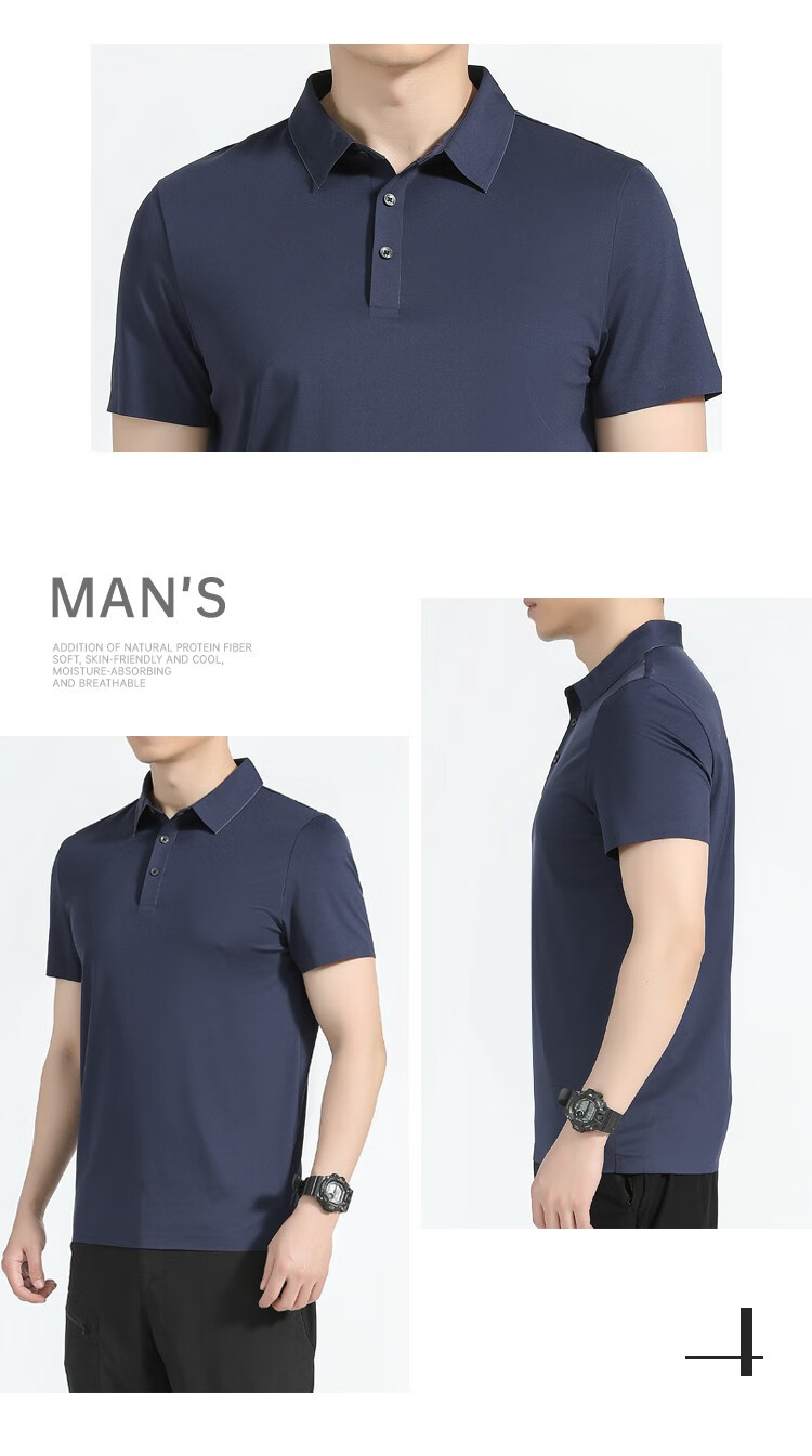 蜀黍家含蚕丝通勤长袖polo衫男士商务薄款休闲男士秋装上衣