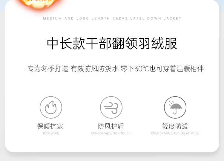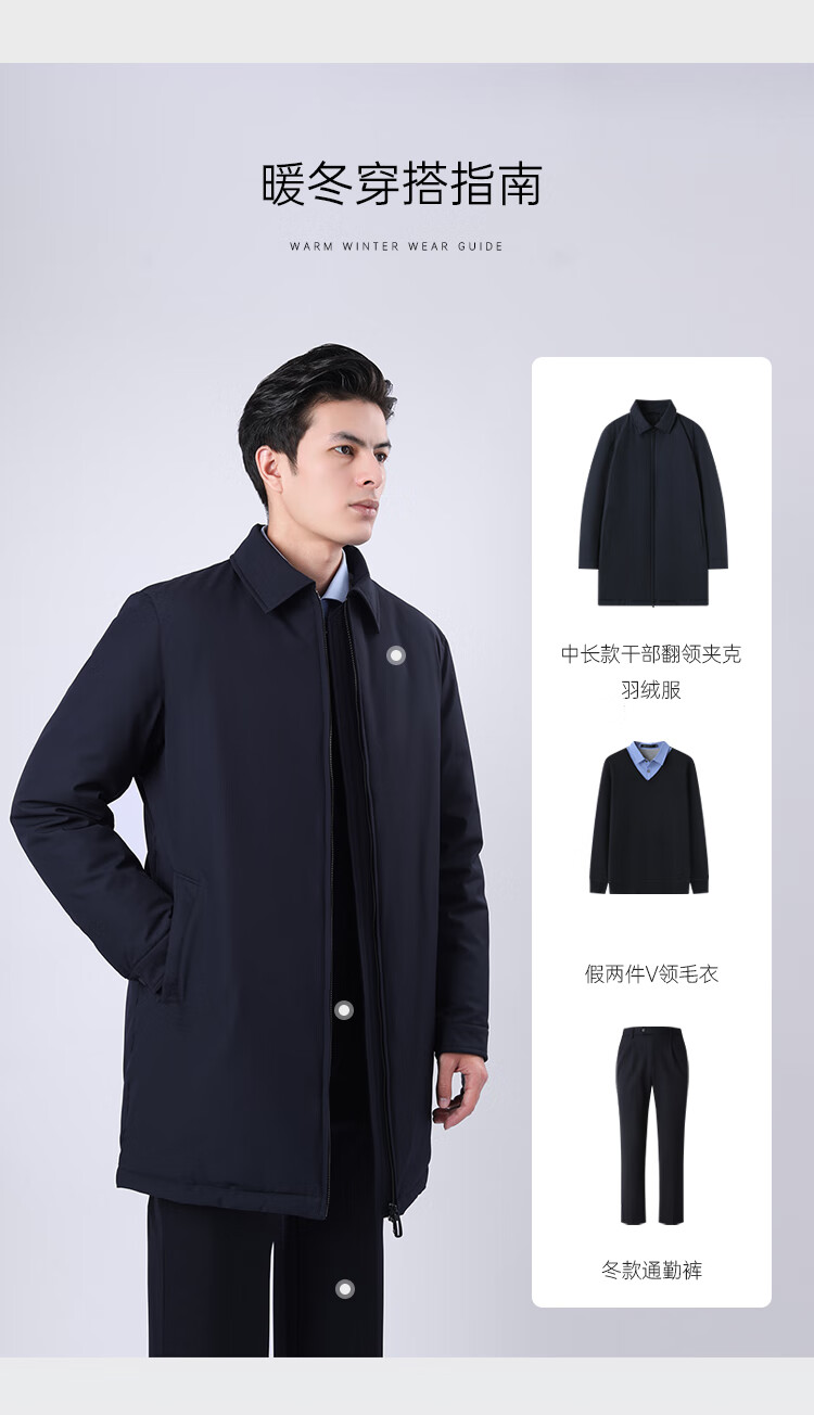 蜀黍家中长款干部翻领羽绒服2022冬季新款保暖御寒百搭男士外套